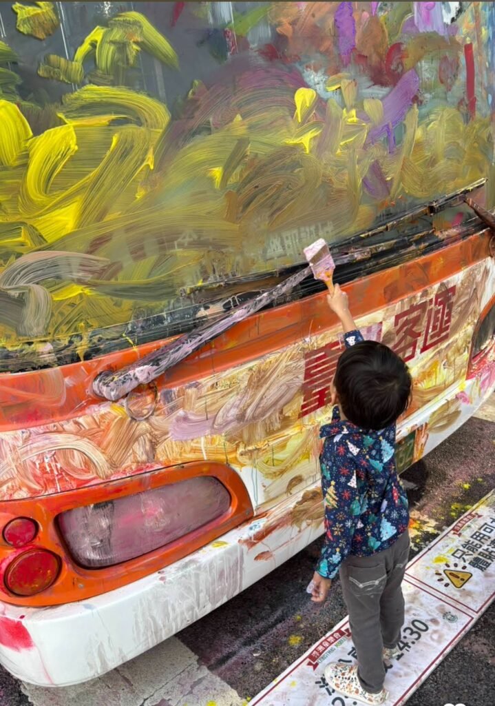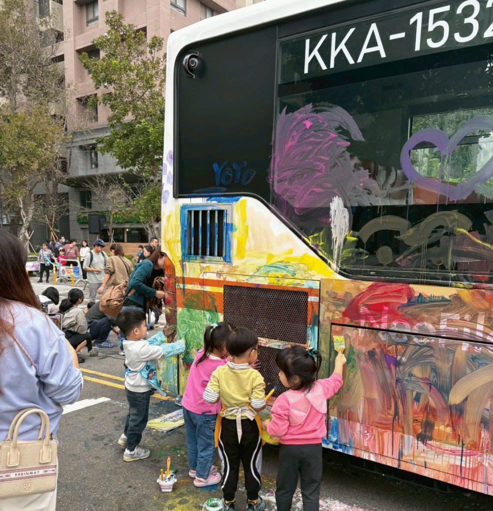 從 彩繪公車 的自由揮灑,到一場場 手作藝術體驗課程,孩子們勇敢地拿起畫筆,把想像畫在城市裡;家長們則在一旁陪伴、記錄,讓藝術成為親子之間最自然的連結。那一刻,公車不只是交通工具,而是承載歡笑與創意的移動畫布;街道不只是通道,而是一座屬於社區的美術館。